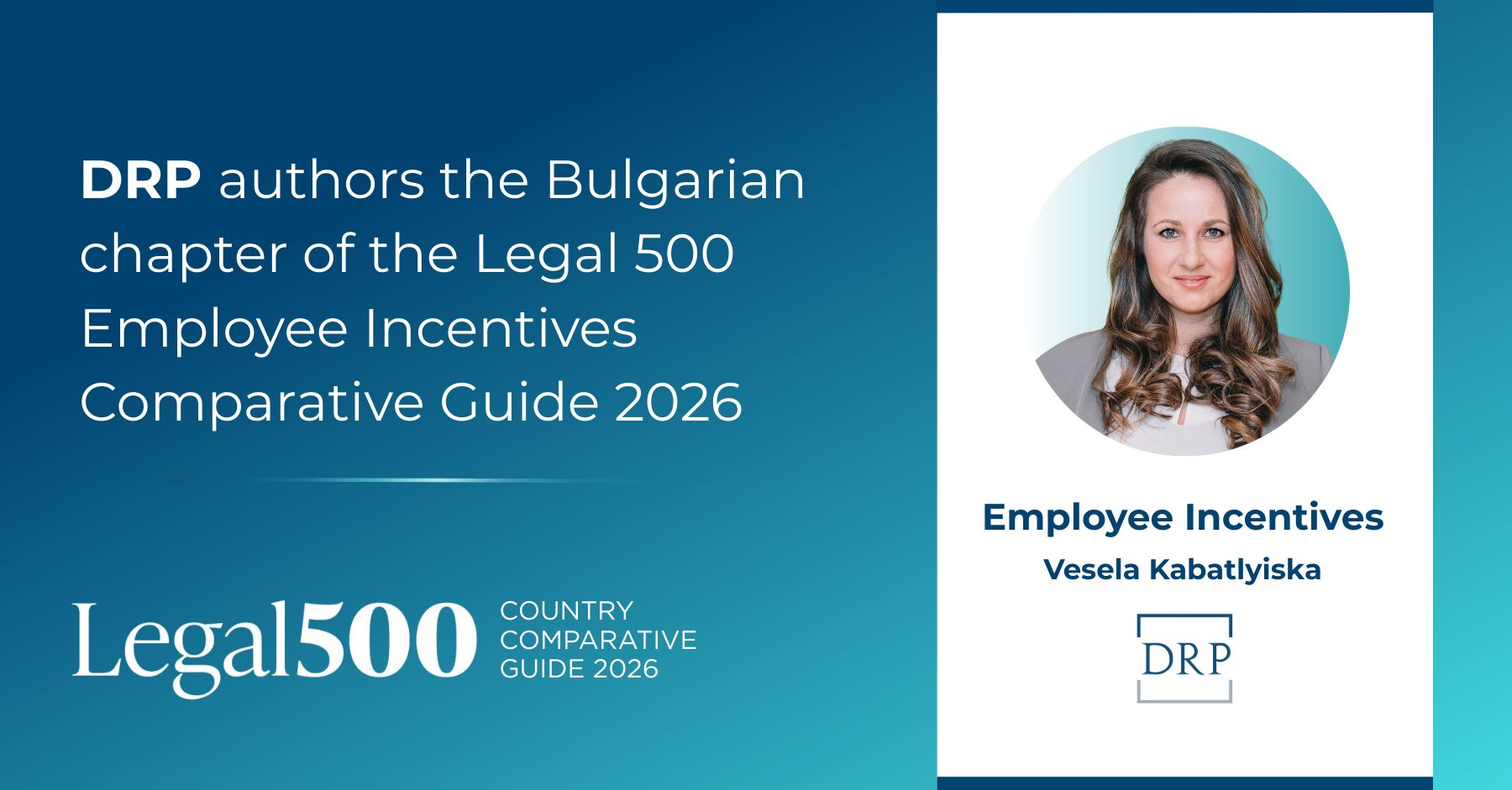 Vesela Kabatliyska, partner at DRP Law Firm, has contributed the Bulgaria chapter to the The Legal 500 Country Comparative Guide on Employee Incentives.