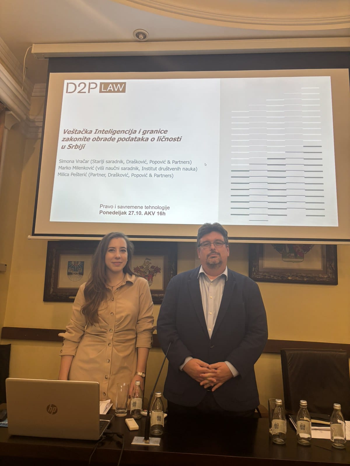 Simona Vračar, senior associate, and Milica Pešterić, partner in the D2P office, together with Dr Marko Milenković from the Institute of Social Sciences, prepared a presentation on “Artificial Intelligence and the Limits of Lawful Processing of Personal Data in Serbia”.