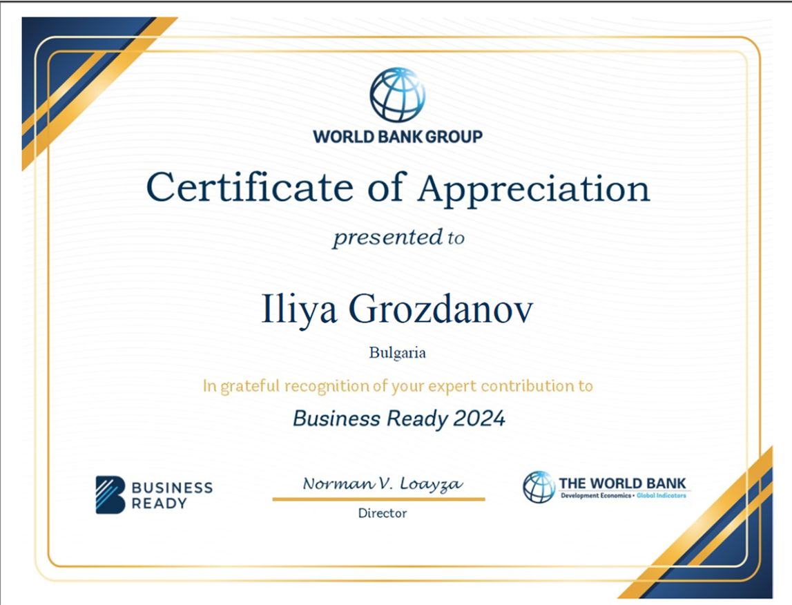 BD2P’s senior partner Uroš Popović, alongside with AA&P partner Svetlana Trendova and DRP partner Ilya Grozdanov, contributed to the Pilot I of the World Bank’s Business Ready (B-READY) Project – a new and ambitious endeavor to develop a strong private sector to end poverty on a livable planet.
